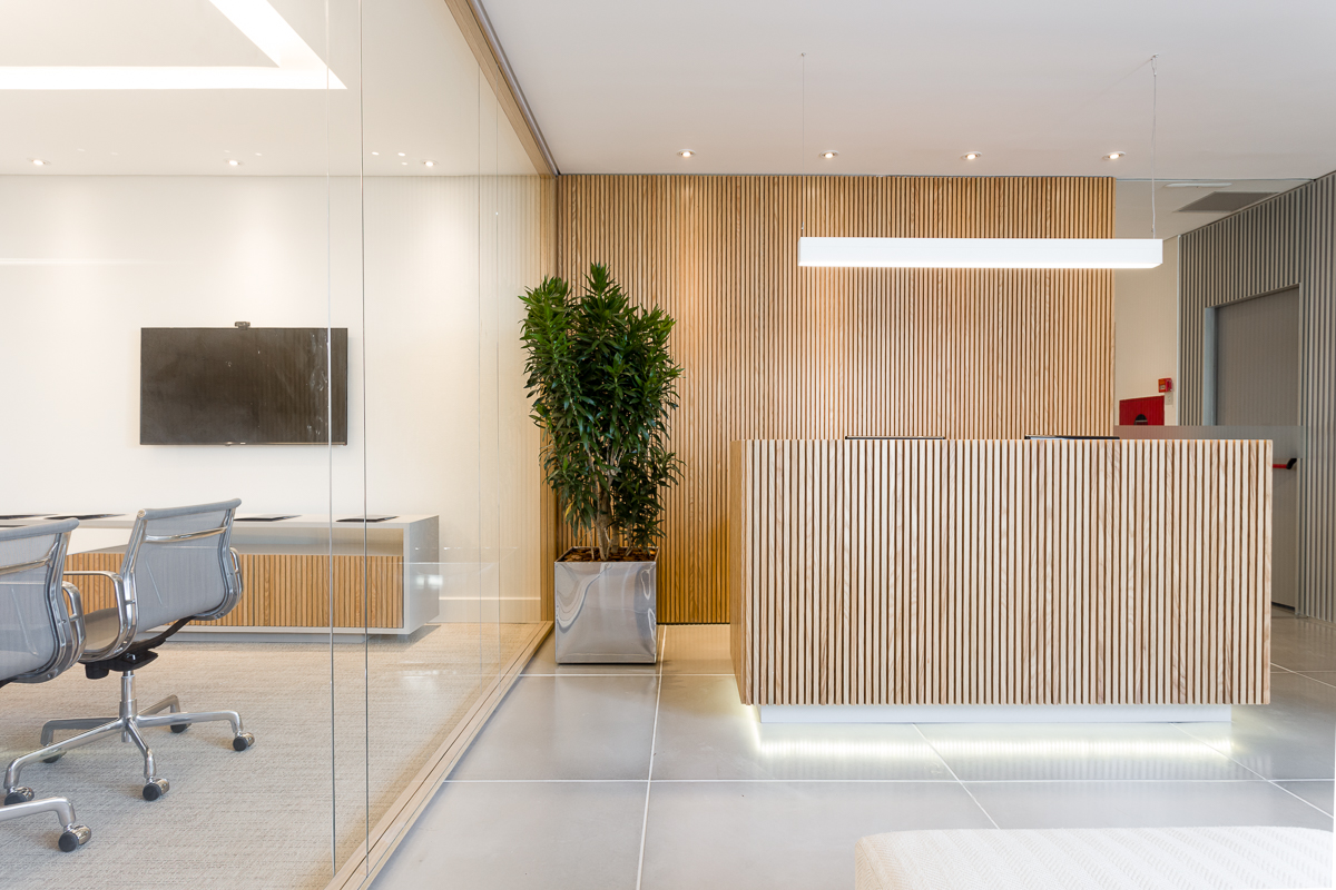 Retrofit total do edifício sede da SRM Asset, contemplando 3 mil m² de obra.